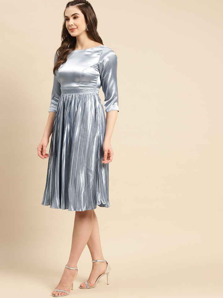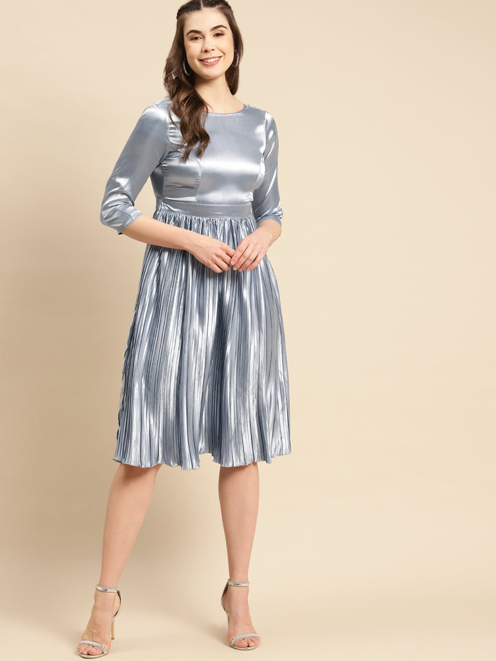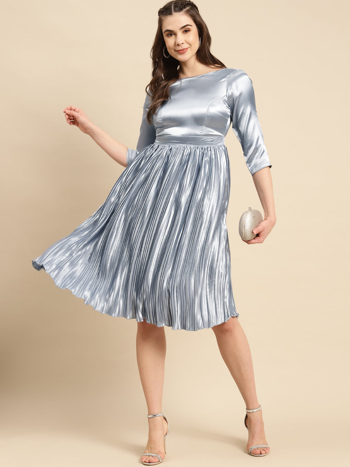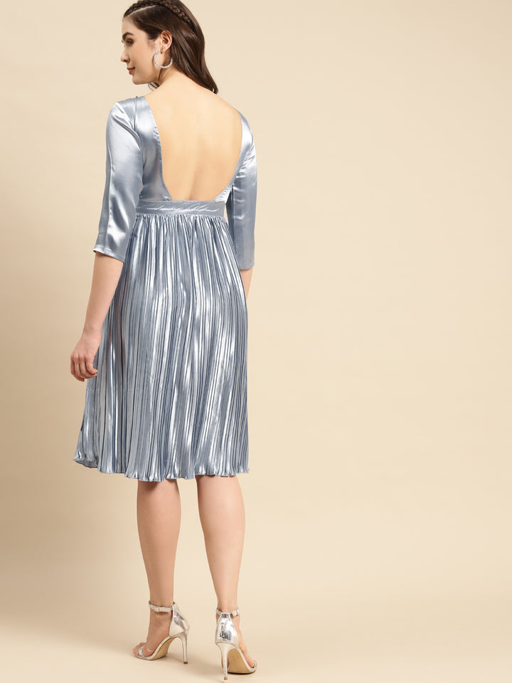 Deep Back pre pleated dress in Night Blue