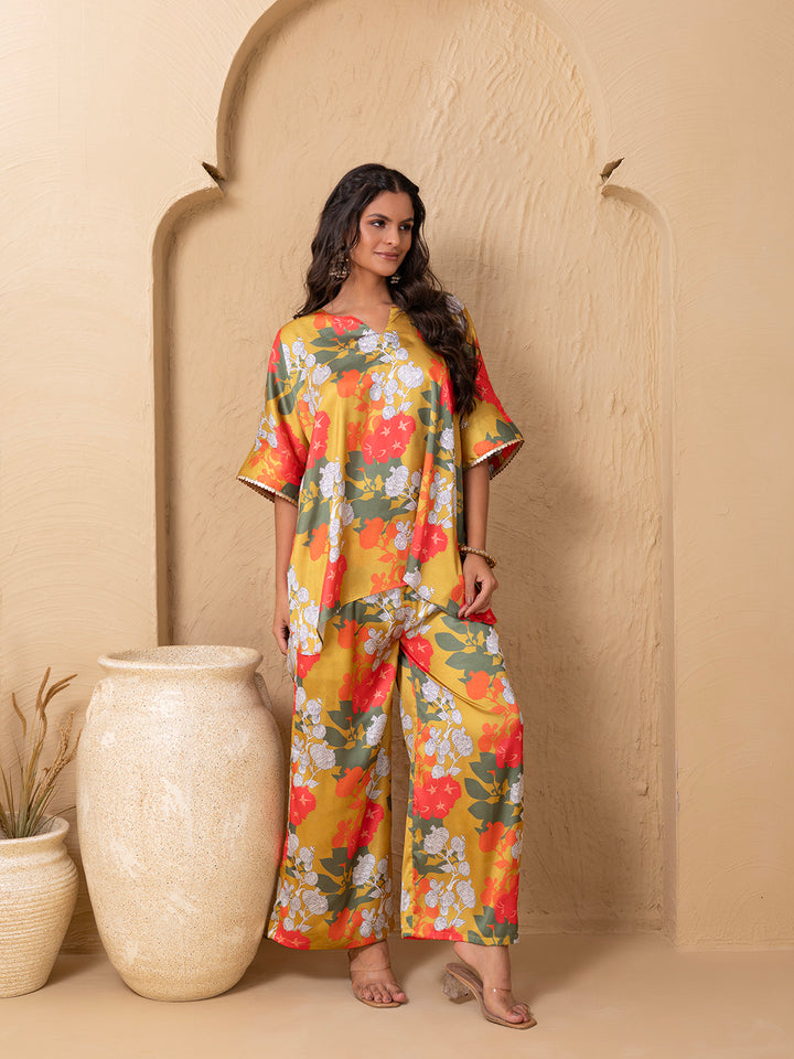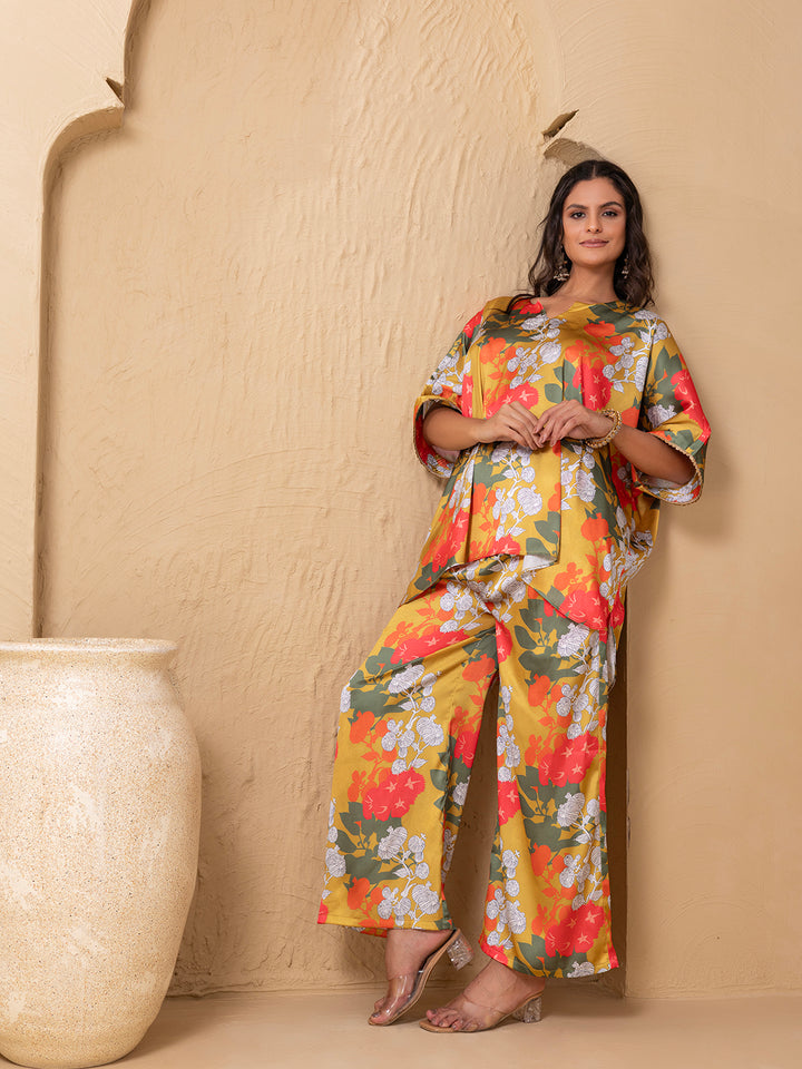 Anti Fit Kaftan Top with Pants in Lime Green and pink Floral Print