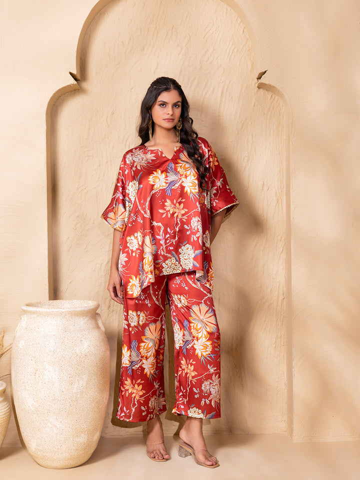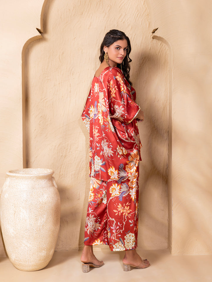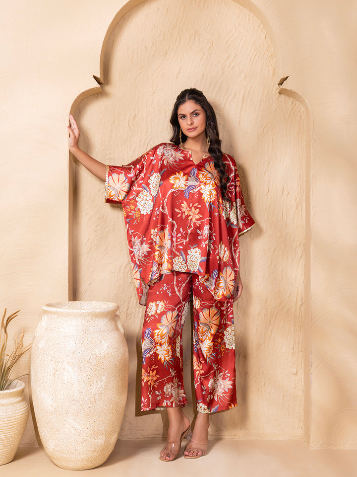 Anti Fit Kaftan Top with Pants in Rust Floral Print