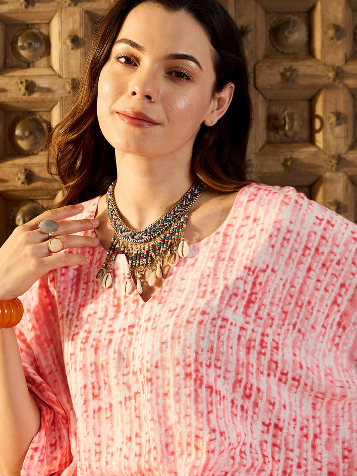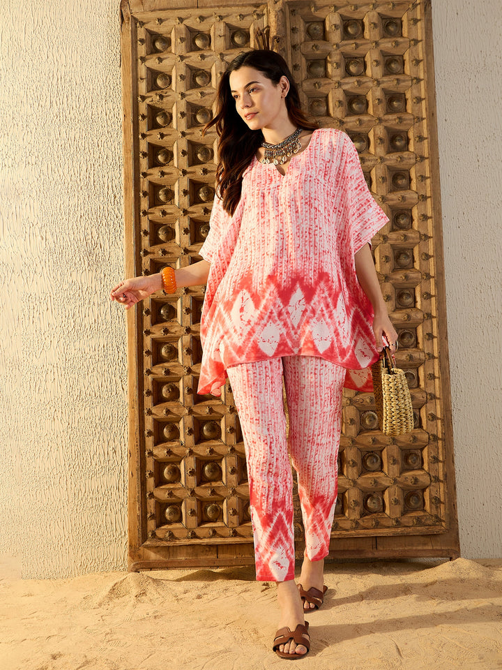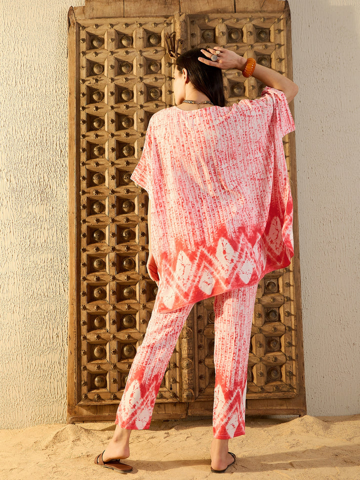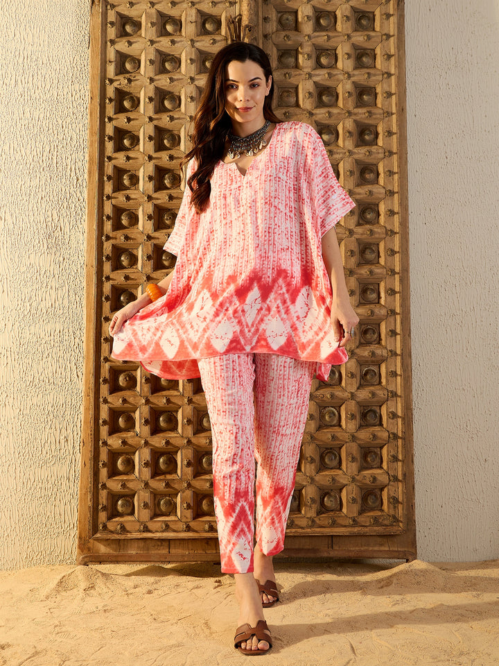 Anti Fit Kaftan with Pants in Peach Tie & Dye