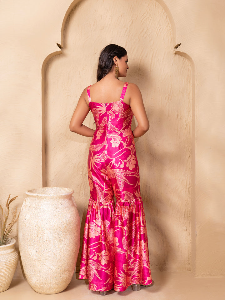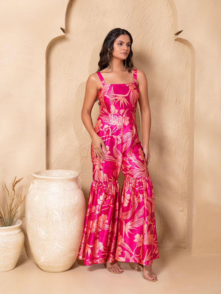 Bell bottom Flare Jumpsuit in Pink floral Print