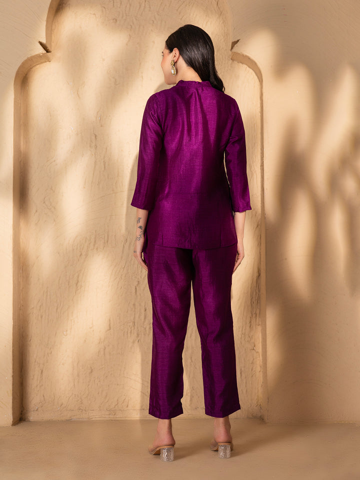 The silhouettes are fluid yet structured, combining traditional forms like kurtas with dhotis, and Fusion Co-Ord Sets.