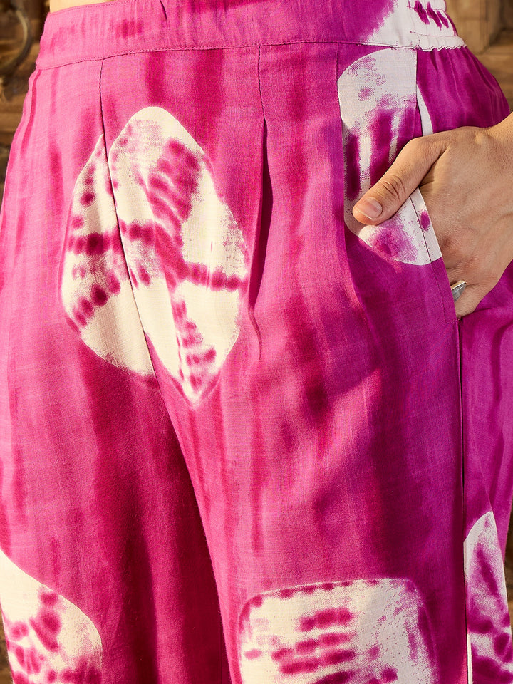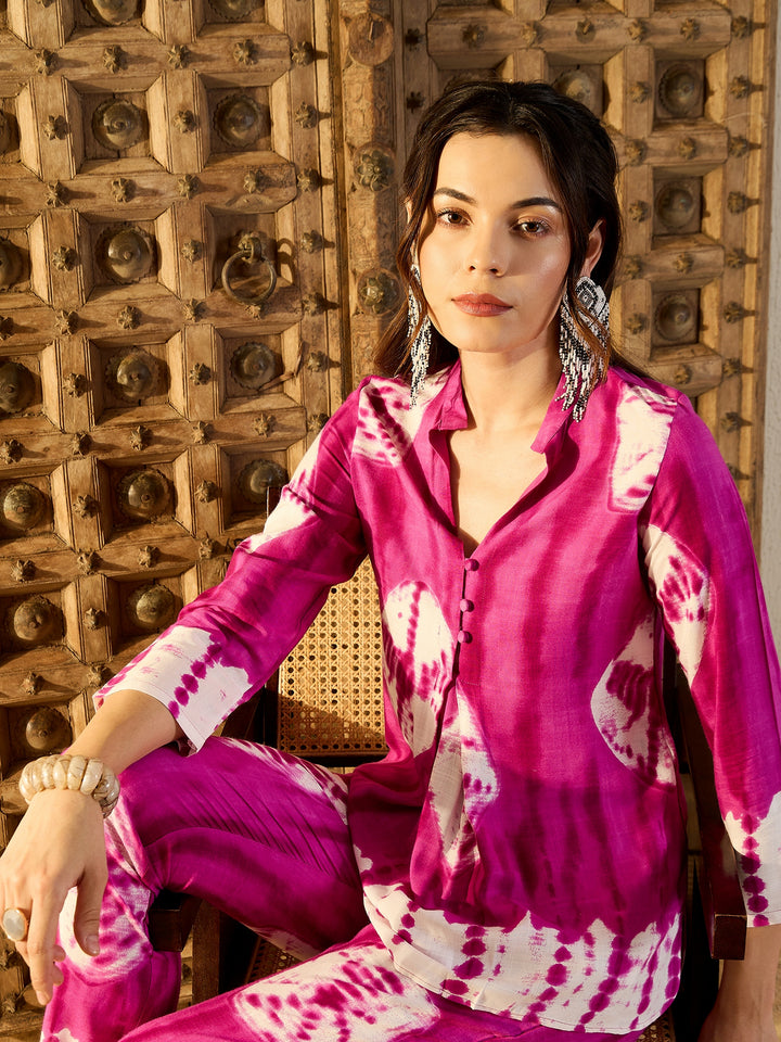 Box Pleat top with Pants Co-Ord Set in Magenta Tie & Dye