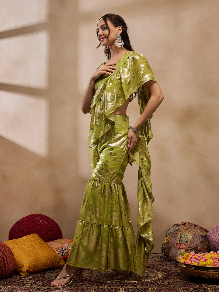 Crop Top with Sharara and frill Dupatta in Olive Color