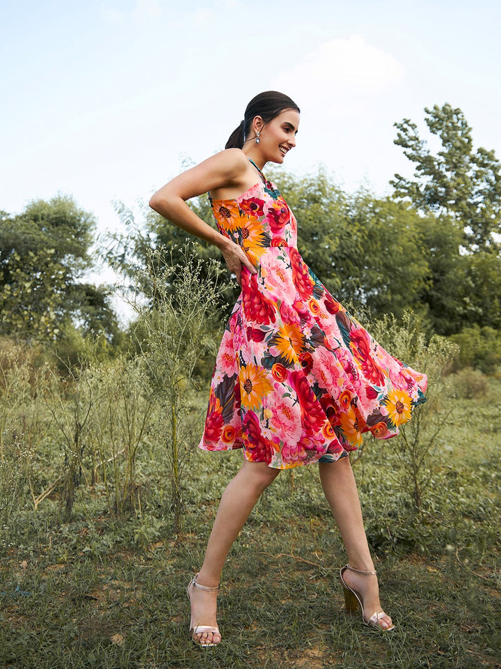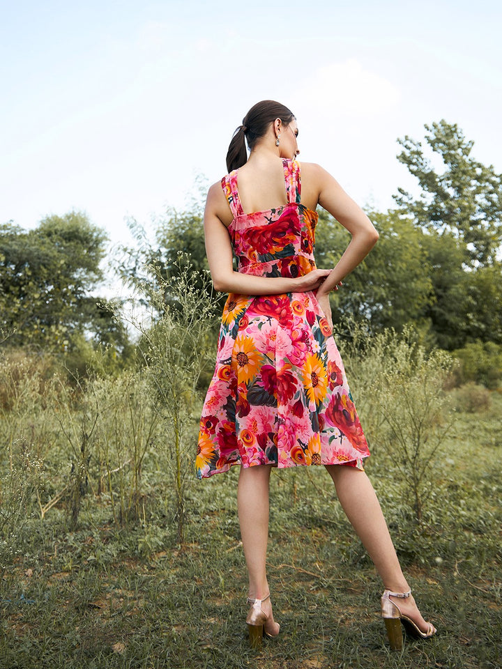 Indulge in the warmth of the sun with our Sun-Kissed Delight Dress. Its flowing silhouette is splashed with a gradient of candy colors, mimicking the hues of a sunset over a tropical paradise. A delicate silhoutte adds a touch of playfulness, while a cinched waist ensures comfort and style in equal measure.