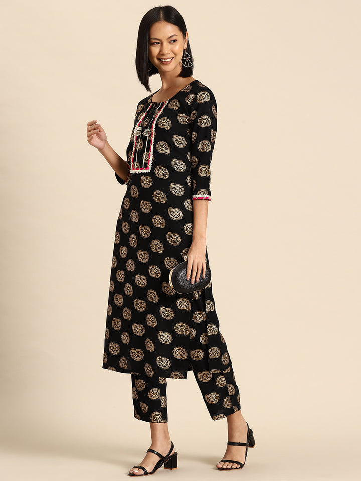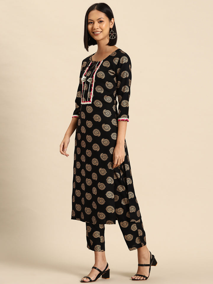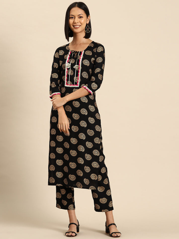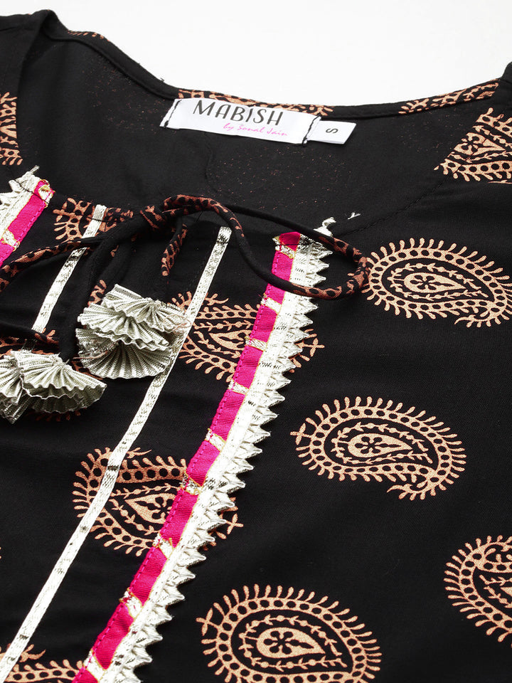 Step out in style with this set from Mabish. Don this look this season for a festive outing with family and friends. Add chunky jewellery like jhumkas and choker accessories.