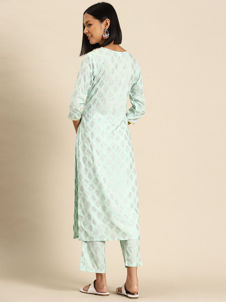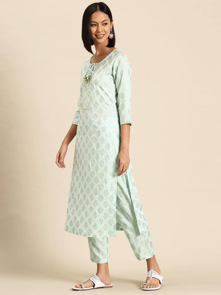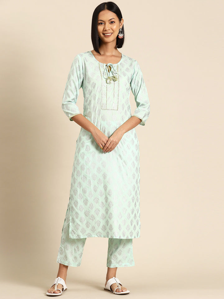 Kurta Pyajama with gota work in Powder Blue Print