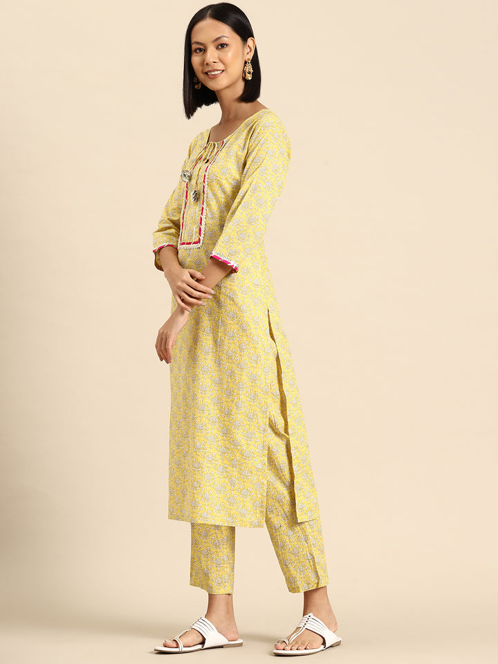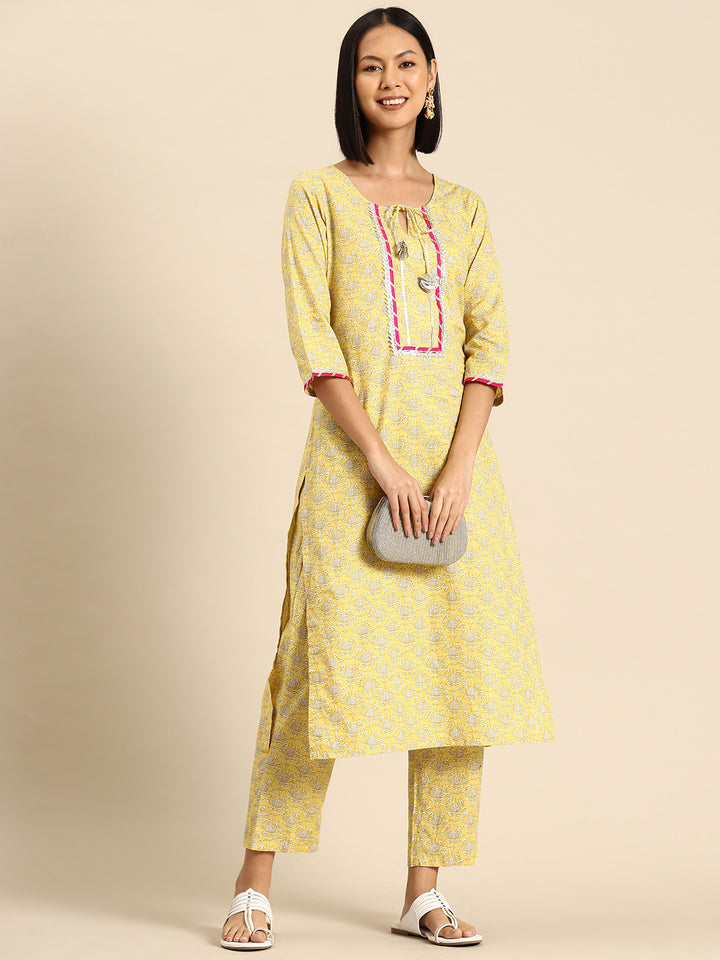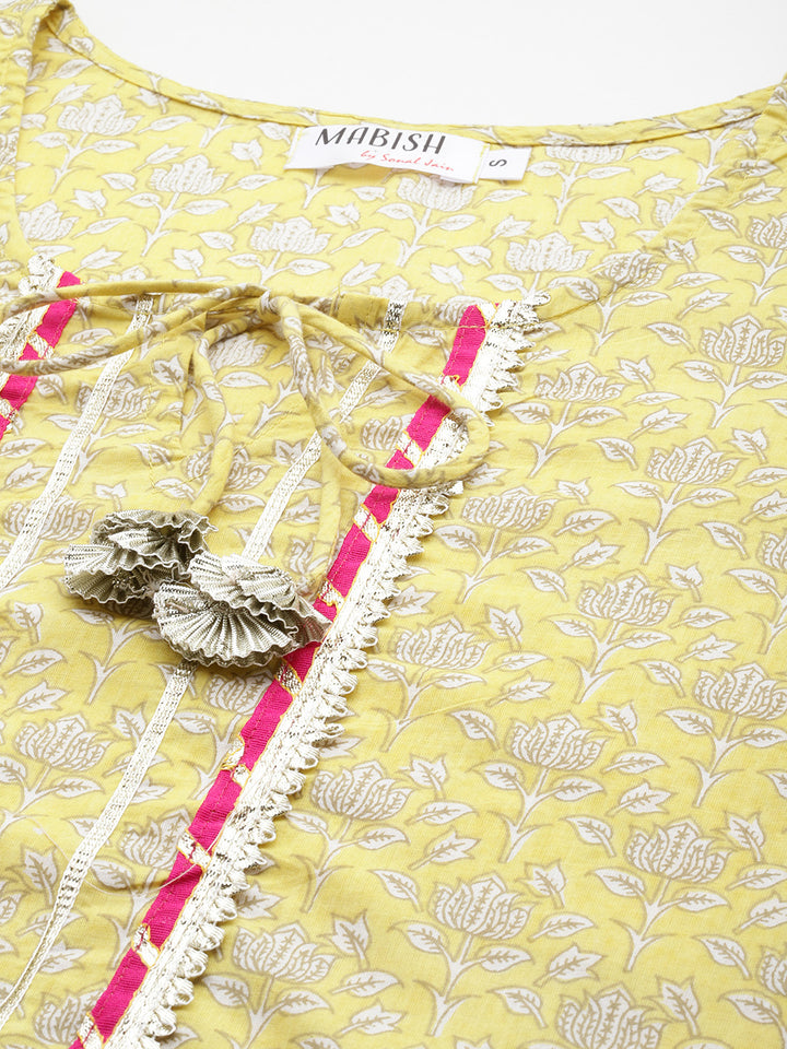 Step out in style with this set from Mabish. Don this look this season for a festive outing with family and friends. Add chunky jewellery like jhumkas and choker accessories.