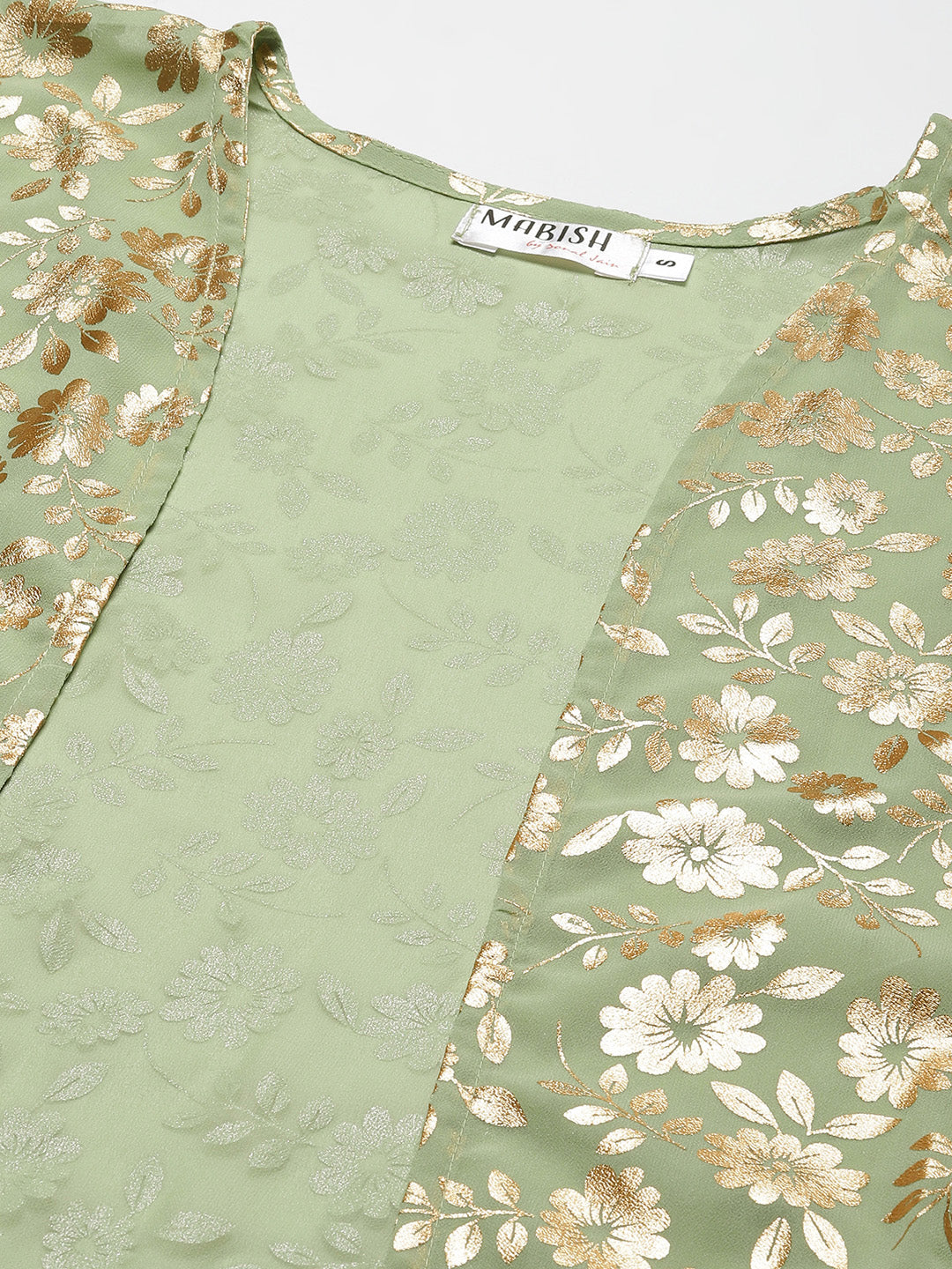 Look your absolute best as you head out this festive season wearing this Fusion Set. Crafted using the finest georgette fabric, this apparel will surely make you stand out. Complement this outfit with a pair of high-heels and chunky gold jeweler to complete your look.