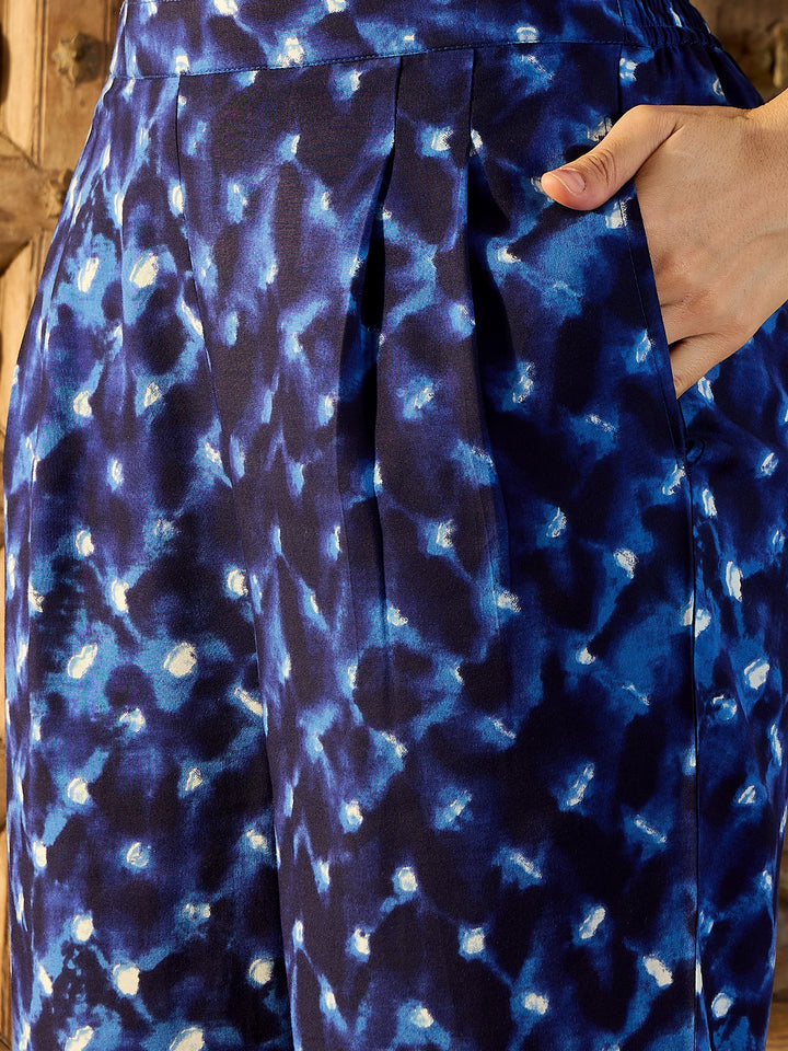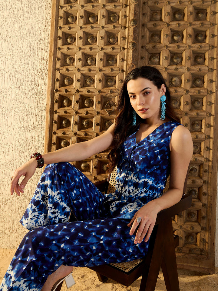 Rounded waist coat with loop buttons and Pants in Blue Tie & Dye