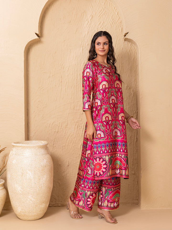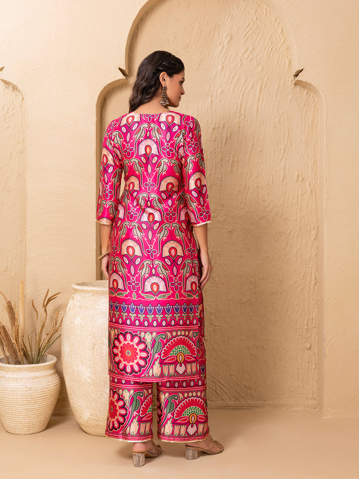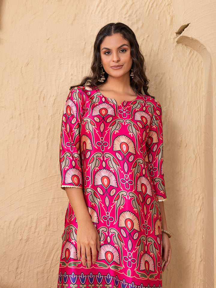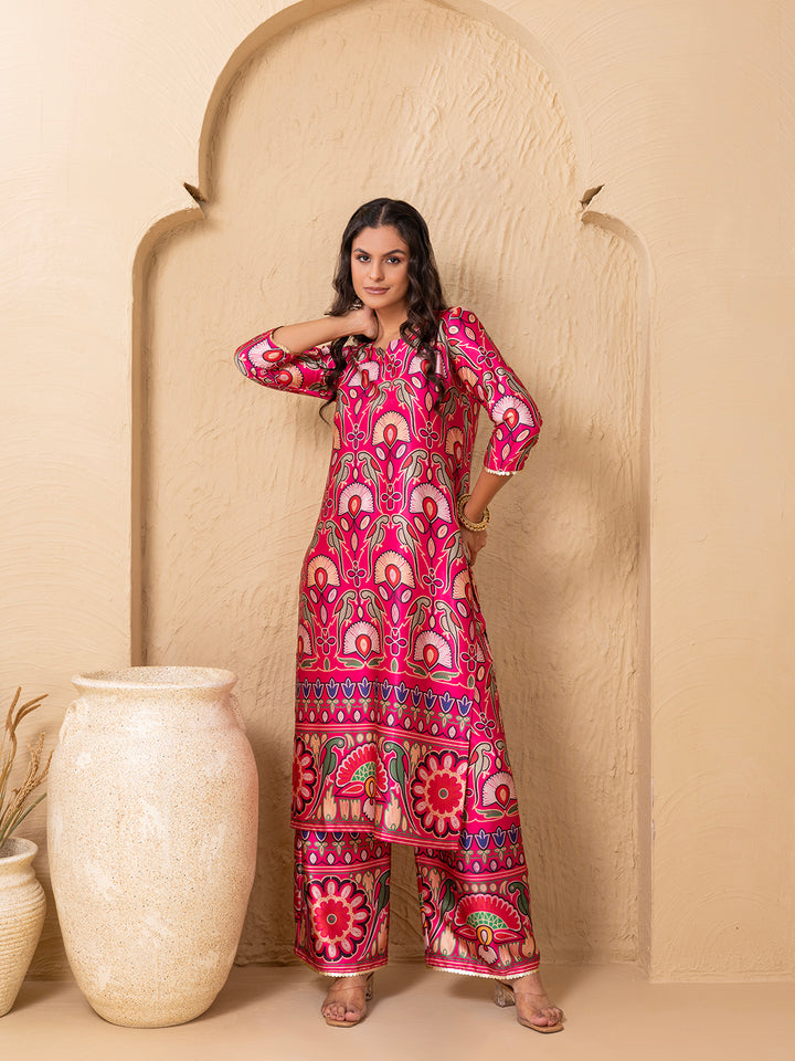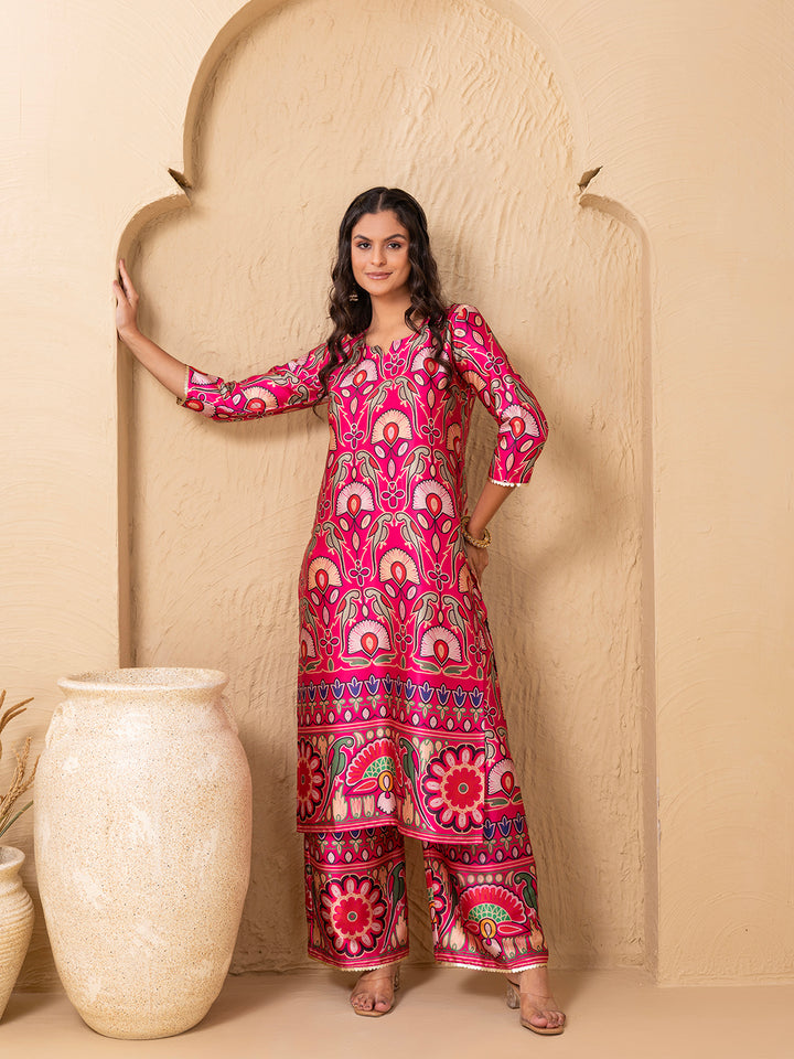 Staright Kurta with ankle palazzo in Border Pink Gujrati Print